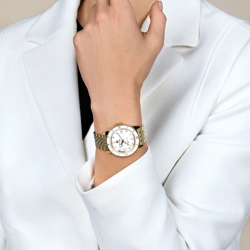 גוף השעון (CASEׂ) : סטיינלס סטיל זהב ובאזל קרמי לבן