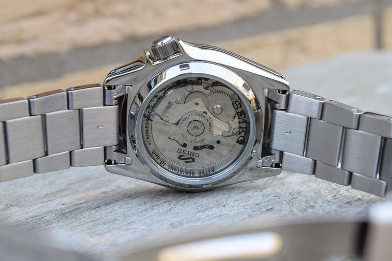 השעון בעל מנגנון סייקו אוטומטי 4R36 הנטען מתנועת היד ומאפשר גם טעינה על ידי סיבוב הכתר.