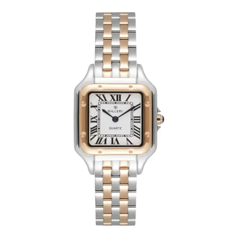 17888-28 שעון גלרי לאישה | דגם מלבני משולב זהב רוז | לוח ספרות רומיות | שנתיים אחריות | דגם חדש | gallery stainless steel ladies watch 17888-28