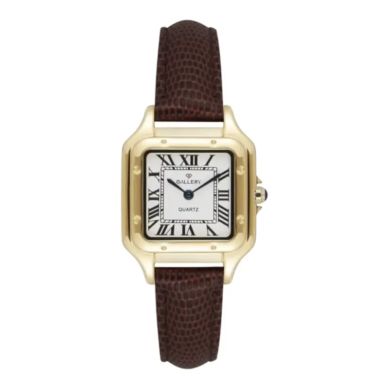17888-12L שעון גלרי זהב ברצועת עור חומה | דגם אופנתי לנשים | לוח ספרות רומיות | שנתיים אחריות יבואן רשמי | gallery stainless steel ladies watch 17888-12L