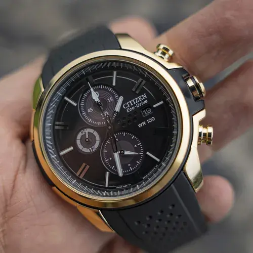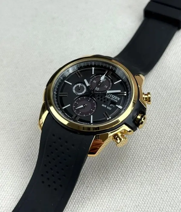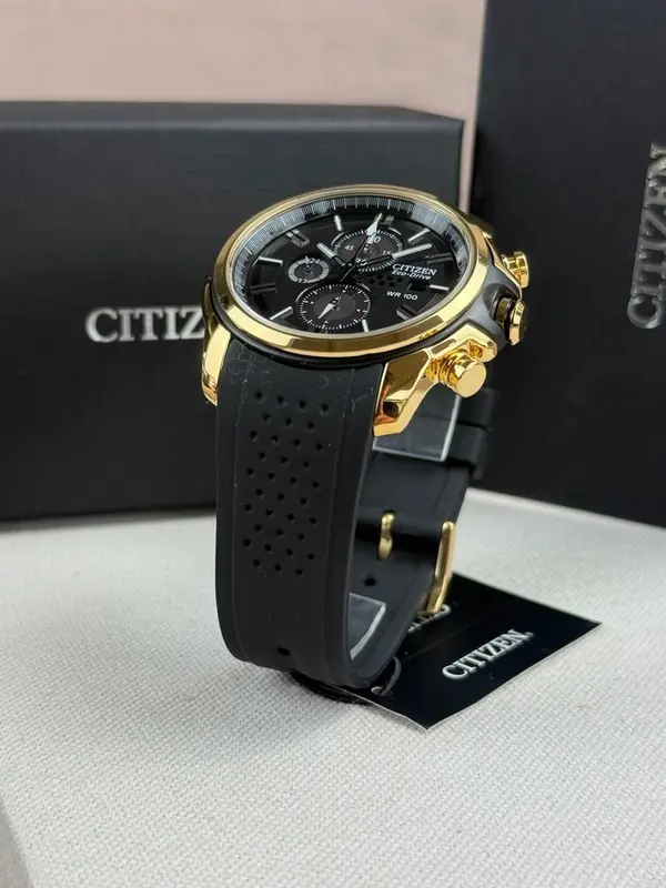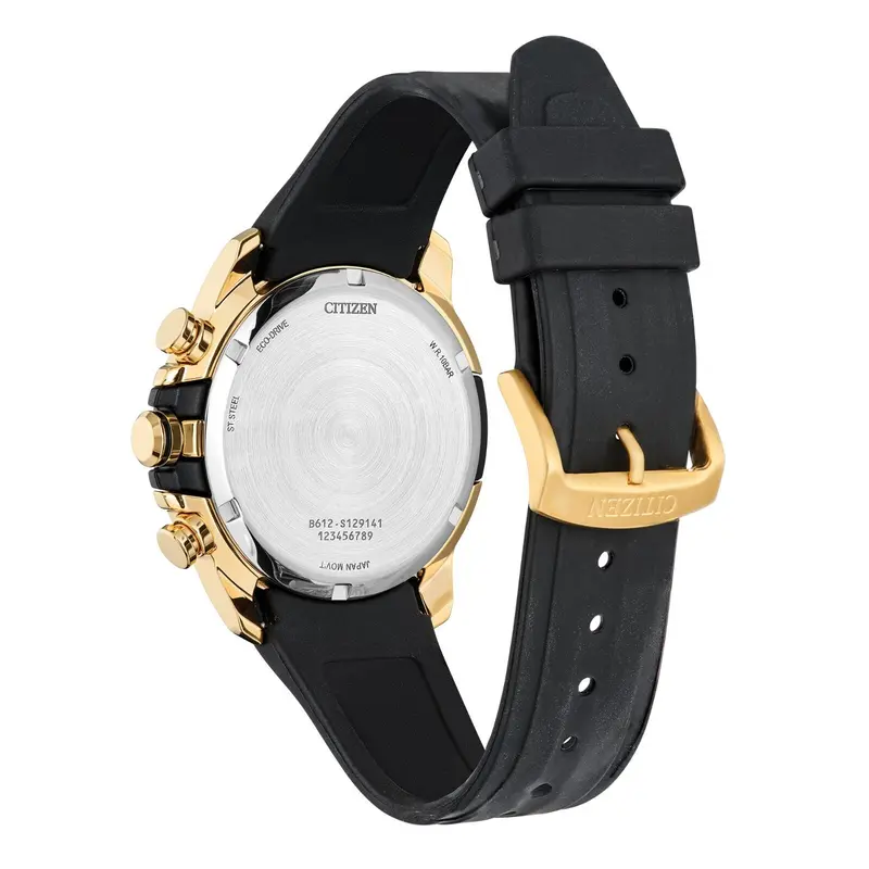 CA0422-01E שעון יד סיטיזן אקו דרייב לגברים | דגם ספורט קייס זהב | דגם כרונוגרף ברצועת סיליקון| שעון גדול אלגנטי ספורטיבי | Citizen Mens Sport Casual Chronograph Date Eco-Drive CA0422-01E