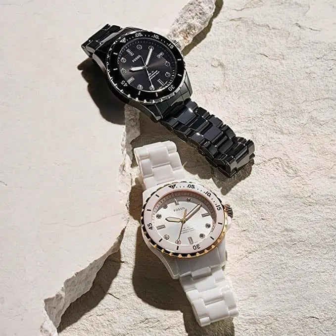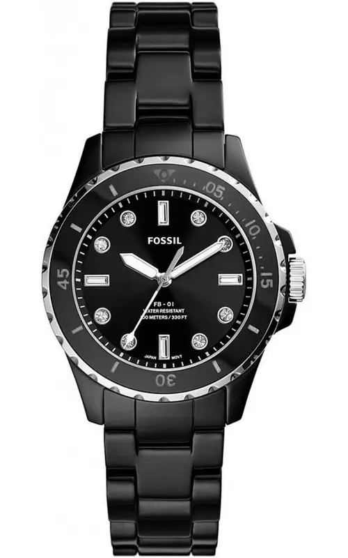 CE1108 שעון קרמי של פוסיל לנשים דגם שחור 36 מ''מ | שעון אופנתי יוקרתי בלוח שחור קריסטלים | Fossil FB-01 Analog Ceramic Black Dial Quartz CE1108