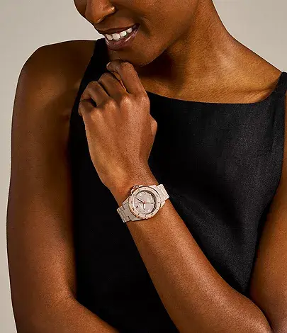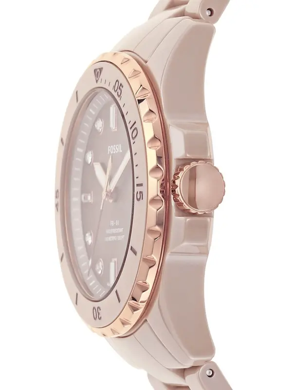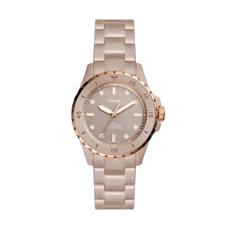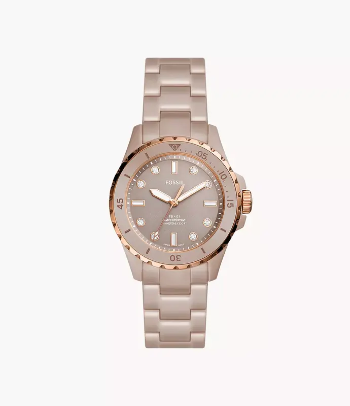 CE1111 שעון לאישה של פוסיל | דגם חדש בצבע ניוד | שעון קרמיקה בלוח קריסטלים | שעוני אופנה יוקרתיים | FB-01 Three-Hand Salted Caramel Ceramic Watch CE1111