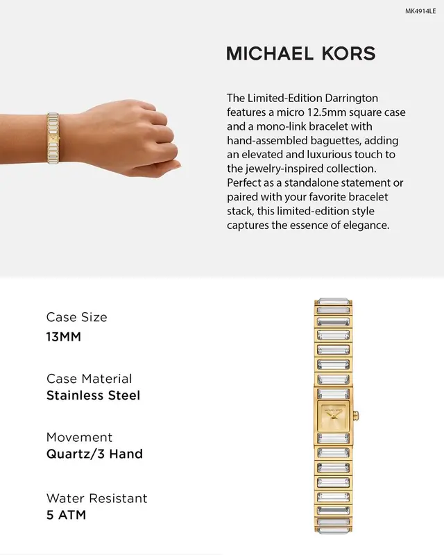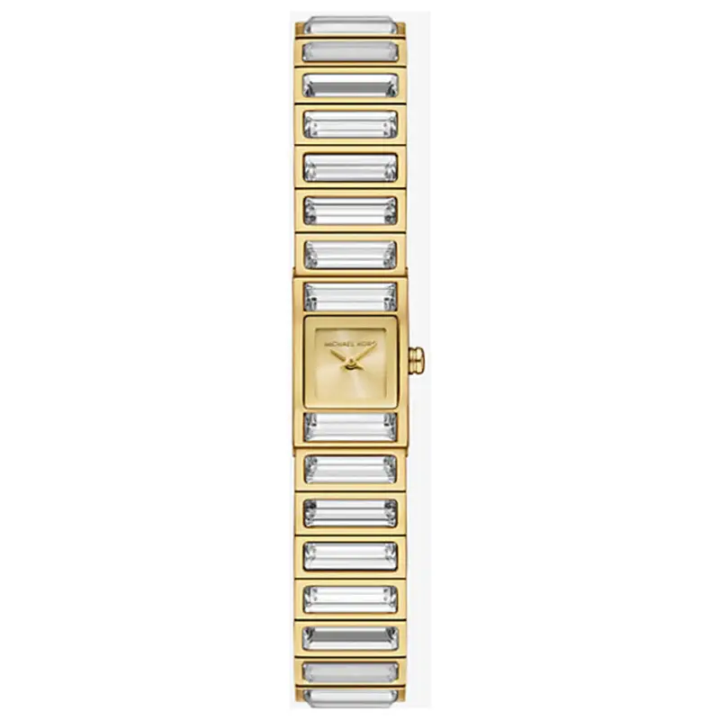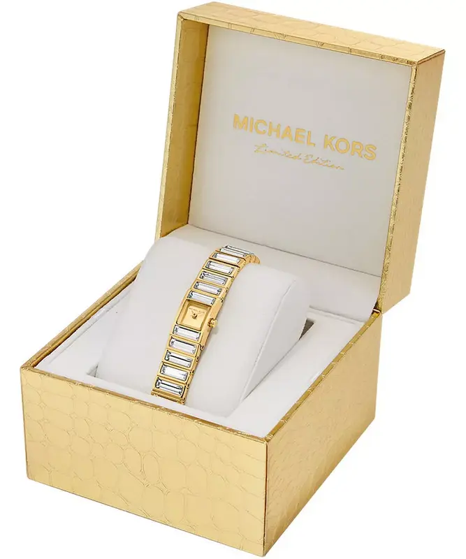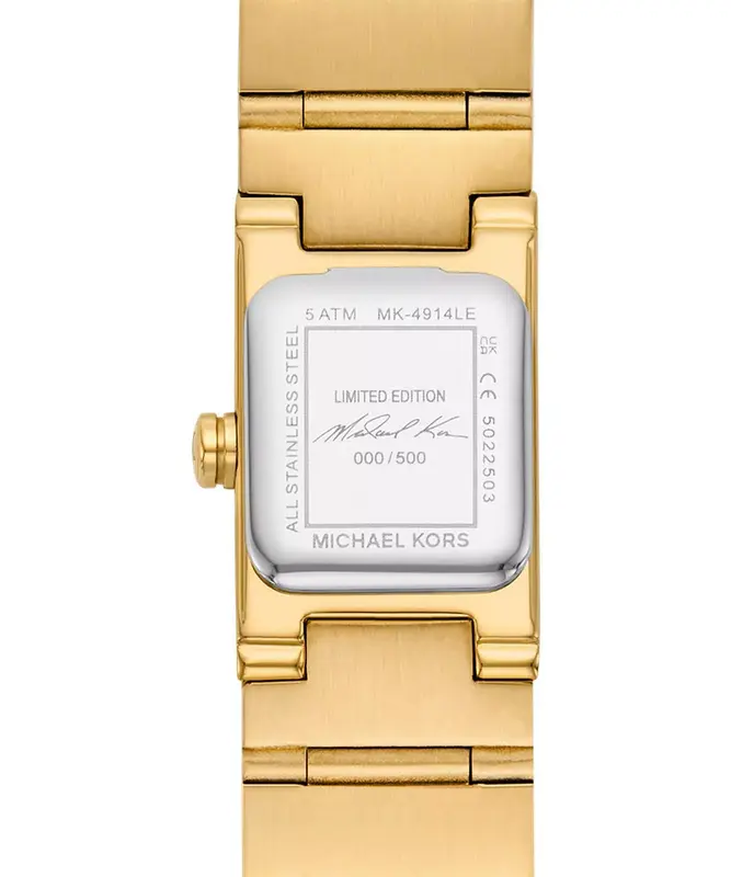 MK4914LE שעון מייקל קורס זהב לנשים במהדורה מוגבלת של 500 יחי | דגם מלבני משובץ אבני באגטים | שעון אופנתי מיוחד | שנתיים אחריות | מלאי מוגבל | Limited-Edition Mini Darrington Pavé Bezel Gold-Tone Watch