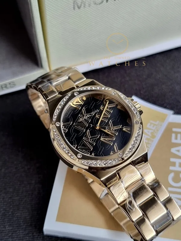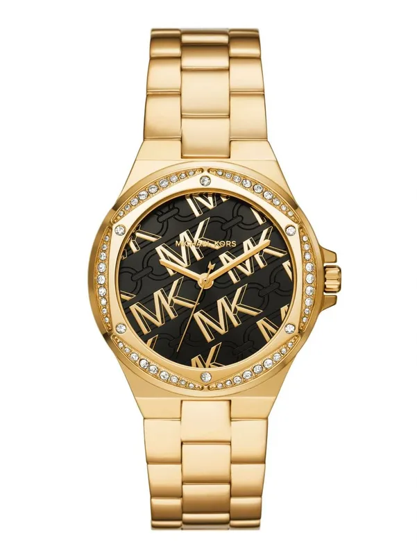 MK7404 שעון מייקל קורס יבואן רשמי 100% מקורי לאישה | דגם זהב בלוח שחור מיוחד ממותג MK | שעון אלגנטי כולל שנתיים אחריות פלאנט טיים | MK7404 Michael Kors Lennox Gold-Tone Watch