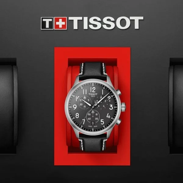 T116.617.16.062.00 שעון טיסו כרונוגרף אלגנטי לגברים | דגם ברצועת עור שחורה | לוח שחור מספרים זרחני וקריא | 3 שנים אחריות | Chrono XL Quartz Anthracite Dial Men's Watch T116.617.16.062.00 by Tissot