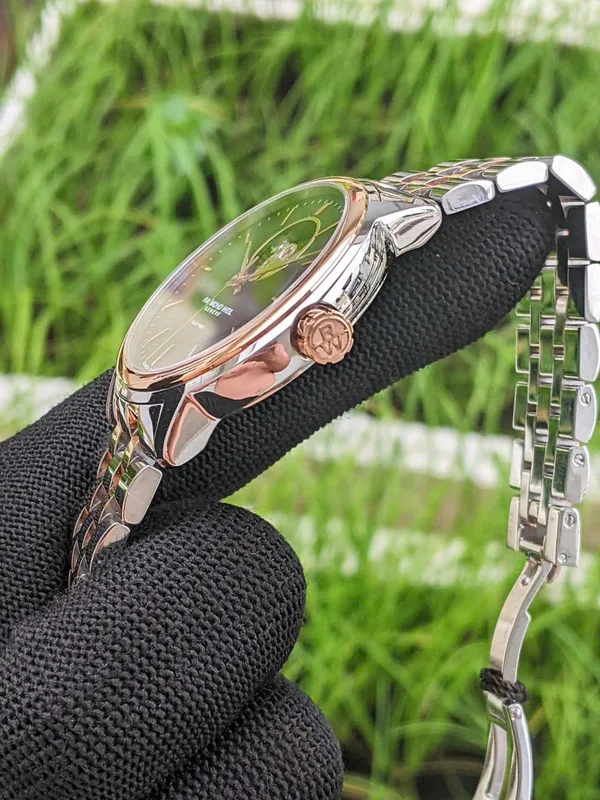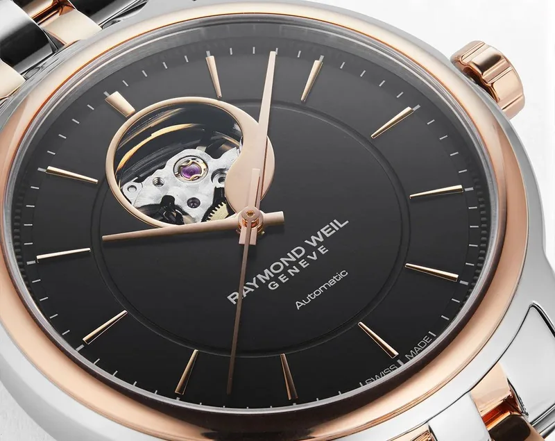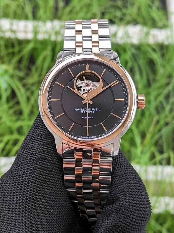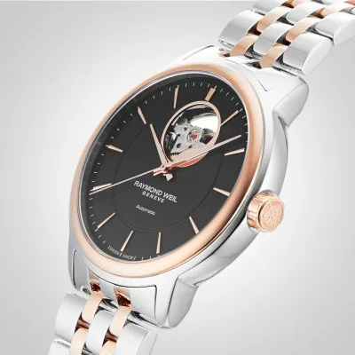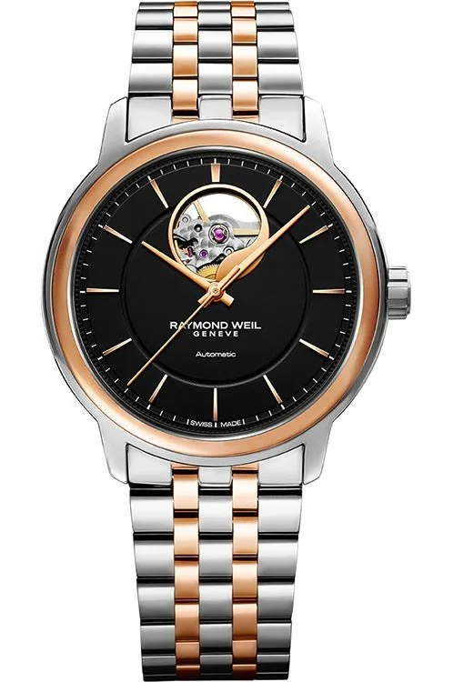 2227-SP5-20021 שעון יוקרה לגבר של ריימונד ווייל שוויץ | דגם אוטומטי לב פתוח ברצועה משולבת זהב רוז | שנתיים אחריות יבואן רשמי | Raymond Weil Maestro Automatic Watch | 2227-SP5-20021