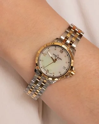 צבע לוח השעון : לבן פנינה - משובץ 8 יהלומים