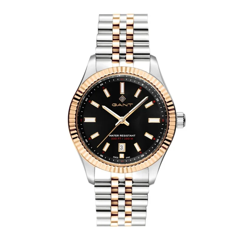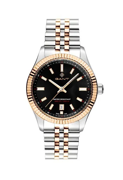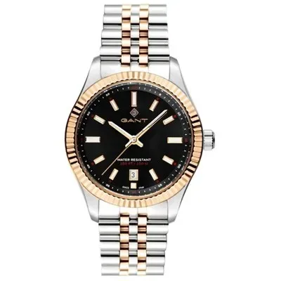 G171010 שעון גאנט יבואן רשמי | דגם לנשים בלוח שחור משולב זהב ברצועה | לוח ומחוגים זרחני | 36 מ''מ | 100 מטר מים | שנתיים אחריות |