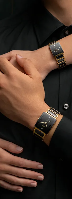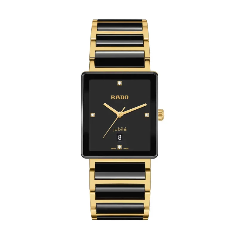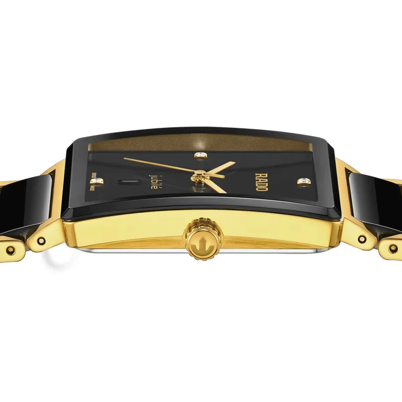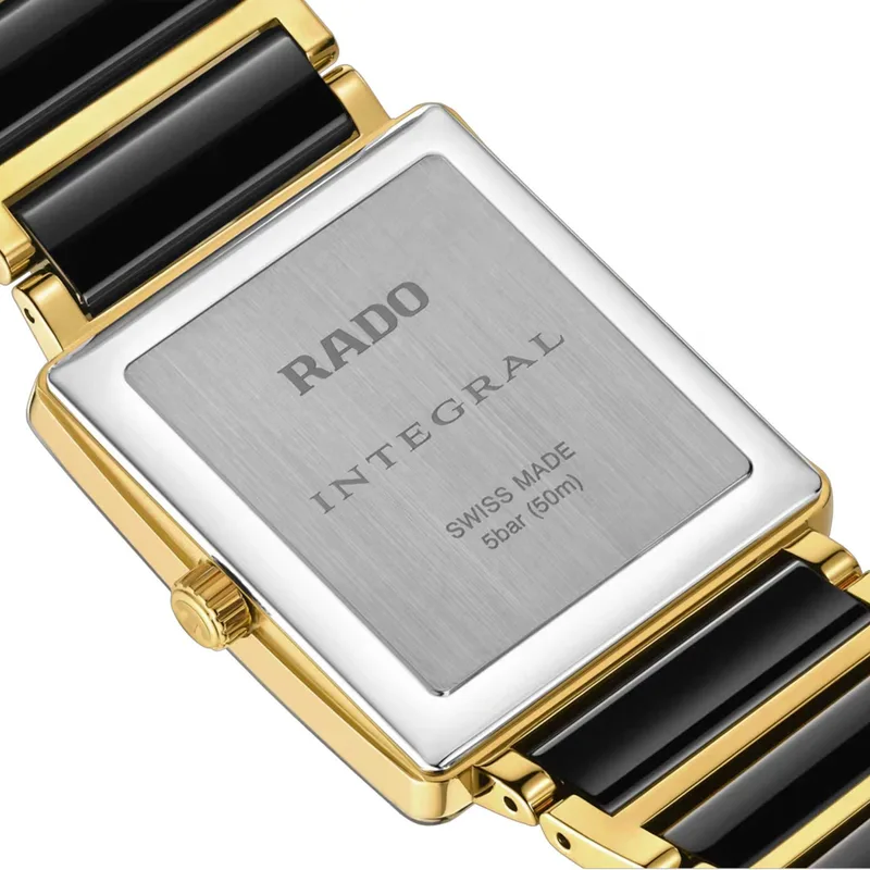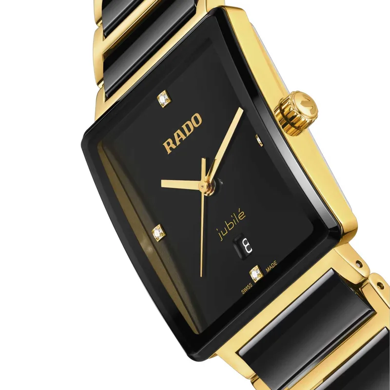 R-62563071 | R20251902 שעון ראדו חדש יבואן רשמי | דגם לגברים משולב זהב עם קרמיקה שחורה | לוח שחור משובץ 4 יהלומים | 5 שנים אחריות | מלאי מוגבל | Rado Integral L Quartz Watch R20251902