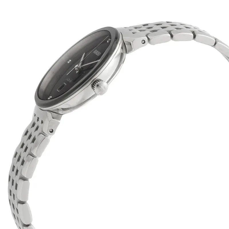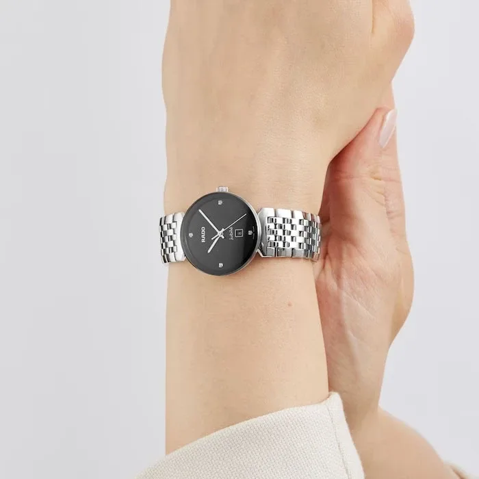 R-39134071 שעון ראדו יבואן רשמי - יד 2 לנשים | דגם מסדרת פלורנס החדשה | לוח שחור משובץ 4 יהלומים | השעון בן 8 חודשים כמו חדש כולל כרטיסים וקופסא | Rado Florence 30mm Ladies Watch R48913713