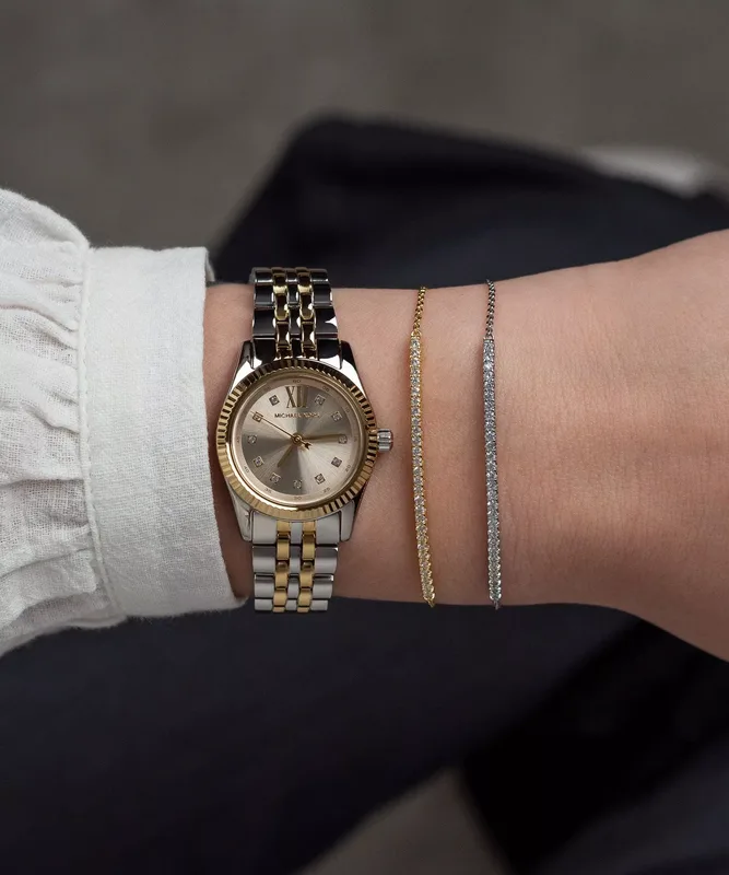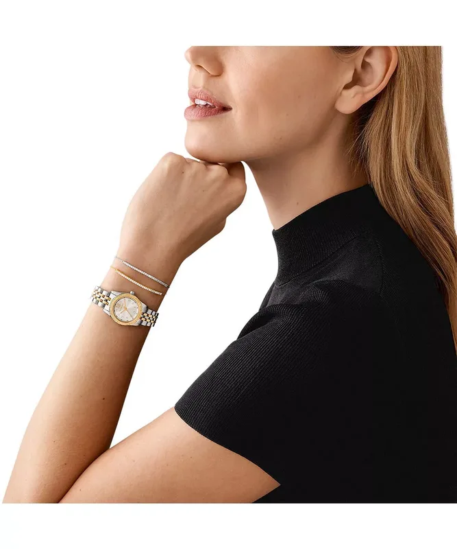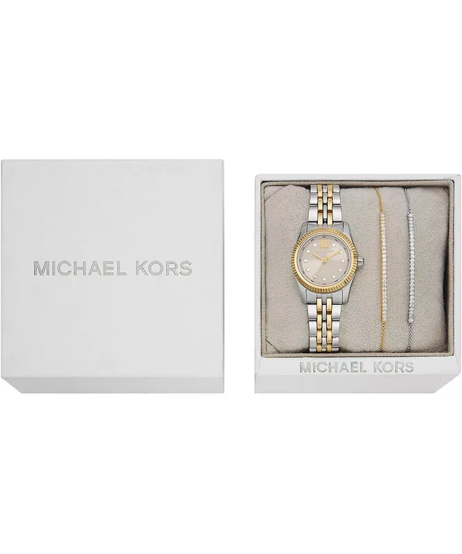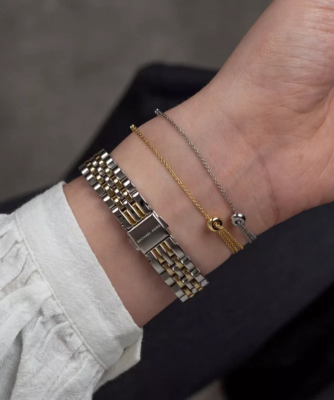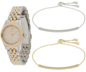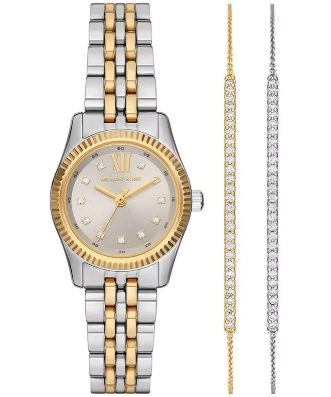 MK4815SET שעון סט צמידים של מייקל קורס עם שעון לאישה | דגם משולב זהב | לוח כסוף משובץ | מלאי מוגבל | שנתיים אחריות | MK4815SET Michael Kors Lexington SET watch