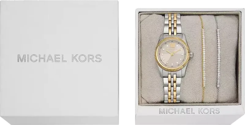 השעון מגיע בקופסא מיוחדת כמארז עם 2 צמידים של מייקל קורס