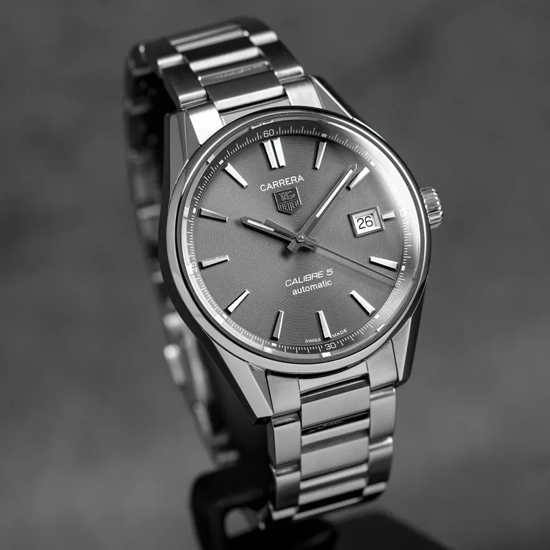 WAR211C.BA0782 שעון טאג הויאר אוטומטי לגברים מסדרת קררה היוקרתית | שעון יד 2 שמור מאד | לוח אפור סאנריי מיוחד | אחריות קופסא וספרים | גב אחורי שקוף | קליבר 5 המוצלח | TAG Heuer WAR211C.BA0782