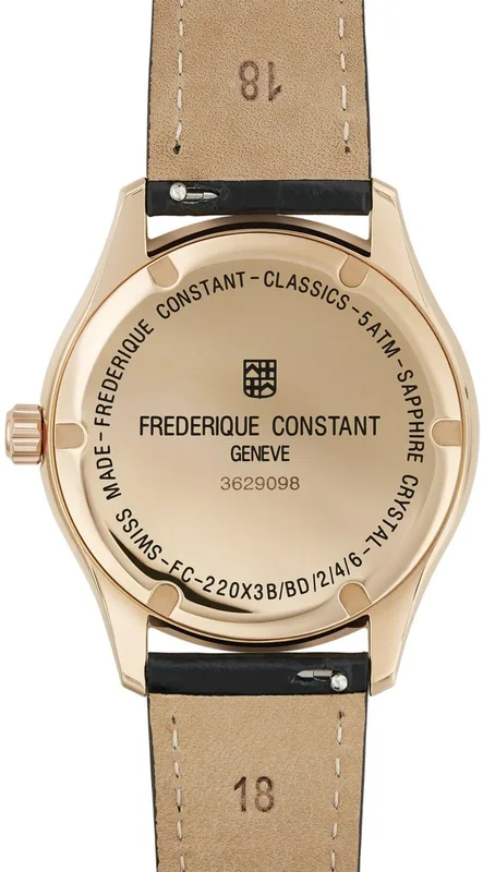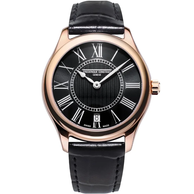 FC-220MB3B4 שעון יוקרתי של פרדריק קונסטנט לנשים | דגם רוז גולד בלוח שחור | רצועת עור | מחוגים לבנים | שנתיים אחריות יבואן רשמי | Frédérique Constant Classics Women's Black Watch FC-220MB3B4