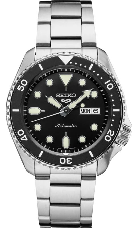 SRPD55 שעון סייקו 5 אוטומטי יבואן רשמי | דגם ספורטיבי אלגנטי בלוח שחור זרחני | גב שקוף | אחריוטת יבואן רשמי בישראל רויאלטי | New Seiko 5 Sports SRPD55 Automatic Black Dial