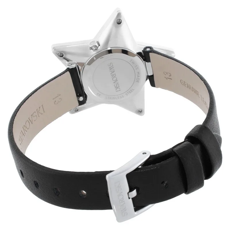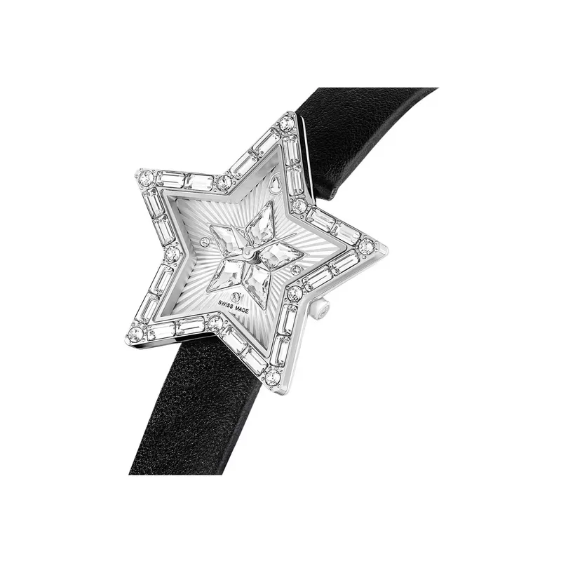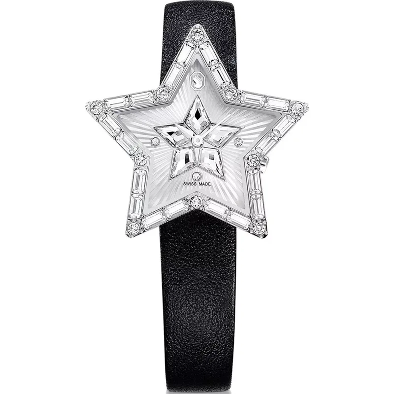 5656952 שעון מיוחד לנשים של סברובסקי | דגם ברצועת עור | צורת כוכב מיוחד משובץ אבני סברובסקי | שעון אופנתי שווצרי | Symbolica Star Quartz Crystal Silver Dial Ladies Watch 5656952 by Swarovski