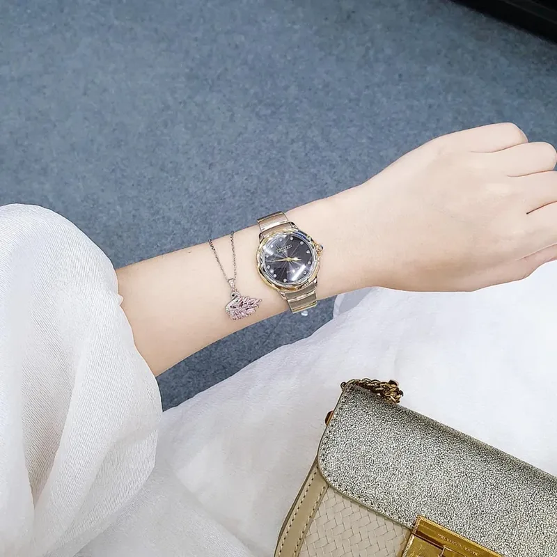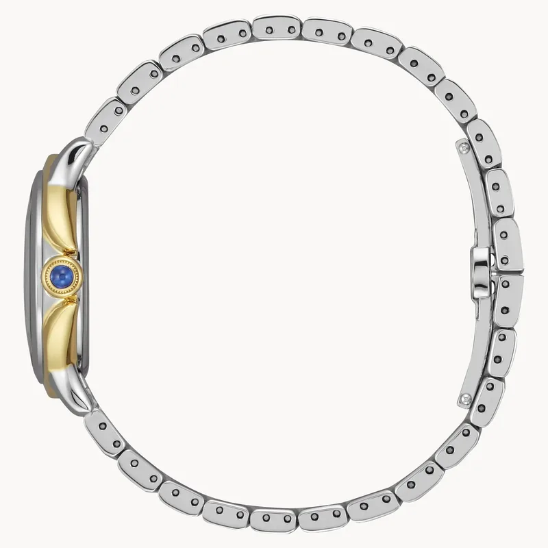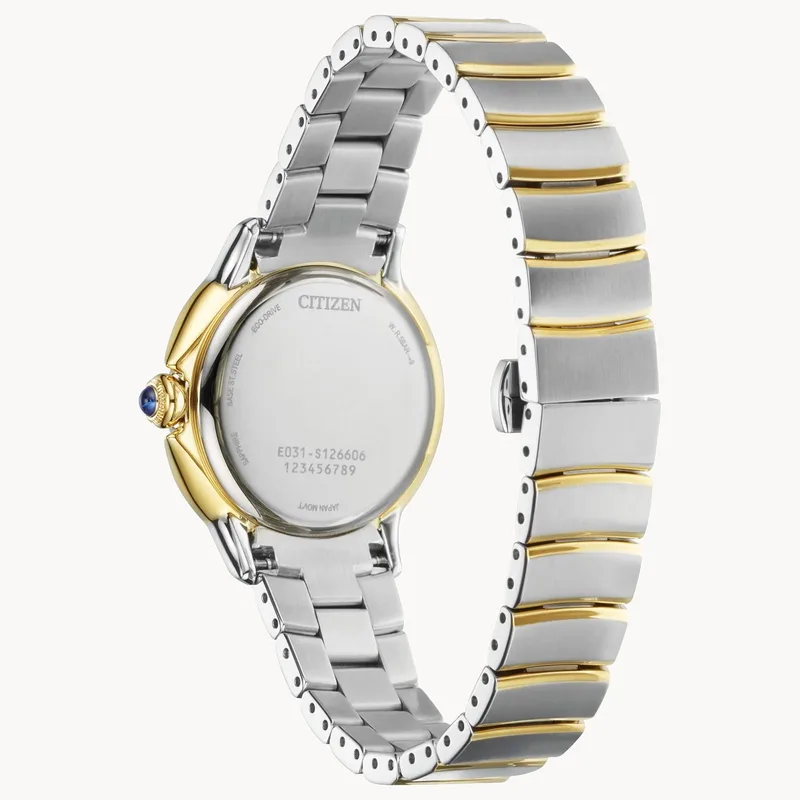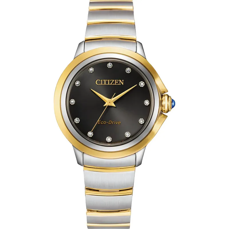 EM0954-50E שעון יוקרתי של סיטיזן לנשים | דגם משולב זהב בלוח שחור משובץ 12 יהלומים | כתר ספיר כחולה | מנגנון סולארי | שנתיים אחריות | Citizen Eco-Drive Ceci Women's Diamond Accent Watch EM0954-50E