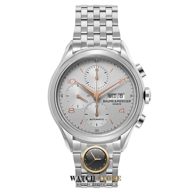 שעון באום & מרסייה לגברים | מנגנון אוטומטי כרונוגרף | מחוגים רוז גולד למראהי וקרתי ומושלם | Baume & Mercier Clifton collection Men's Watch Number MOA10130 Chronograph