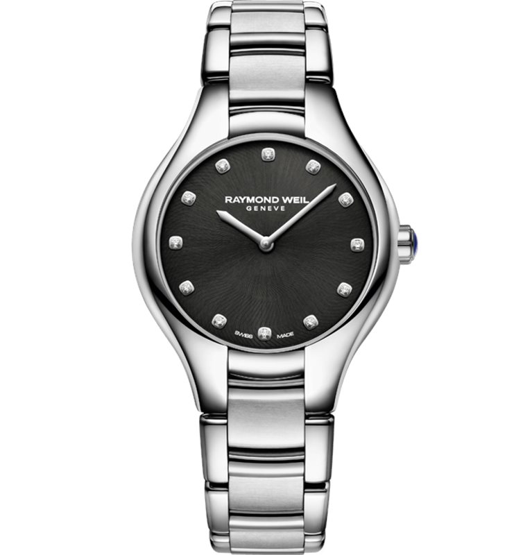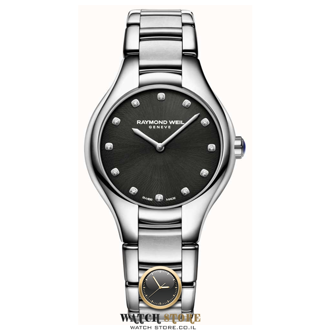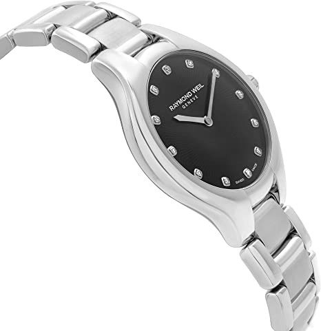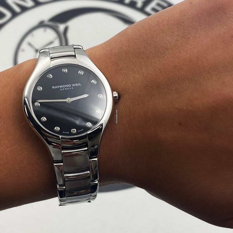 5132-ST-20081 שעון יד לנשים ריימונד וויל מסדרת נואמיה | לוח שחור משובץ 12 יהלומים | מנגנון שווצרי | שנתיים אחריות יבואן רשמי |Raymond Weil Noemia DIAMOND Bracelet Watch 5132-ST-20081