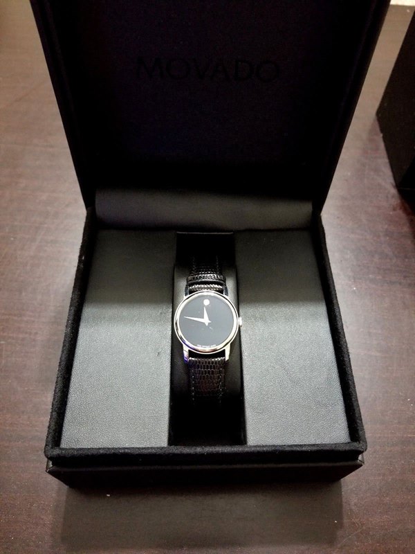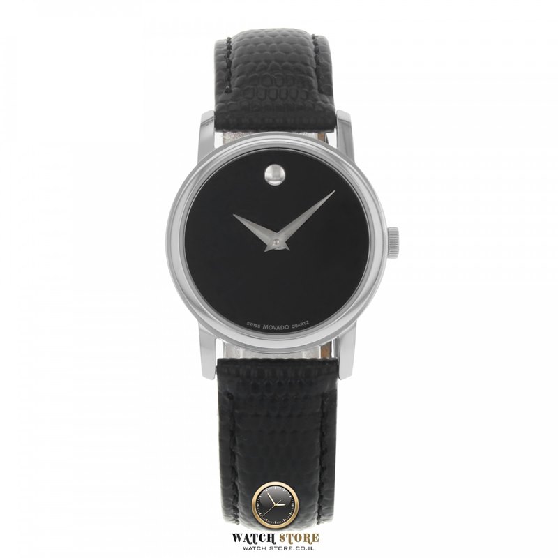 שעון מובאדו יד 2 לאישה ברצועת עור | מובאדו קלאסי אלגנטי ועדין כולל שנה אחריות | חנות שעונים יד שנייה בראשון לציון | Movado Museum Black Dial Black Leather Strap Ladies