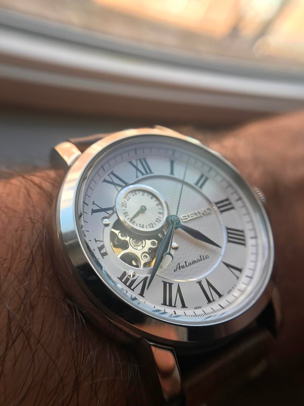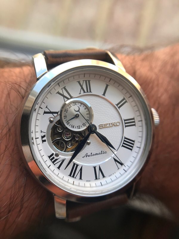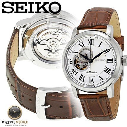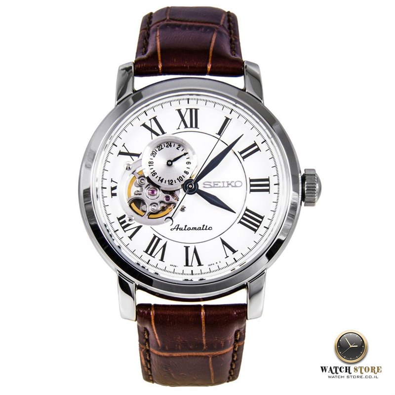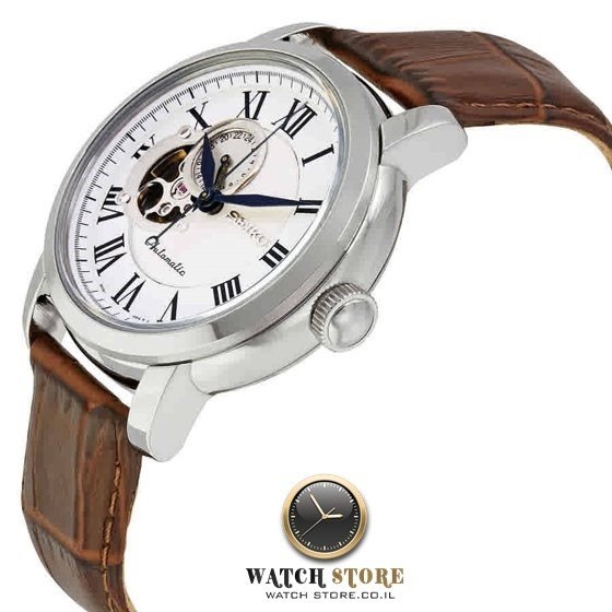 שעון של סייקו אלגנטי יוקרתי לגברים | לוח לבן סקלטון מנגנון אוטומטי | רצועת עור חומה למראה אלגנטי | מלאי מוגבל | Seiko Silver Dial Brown Leather Automatic Mens Watch SSA231