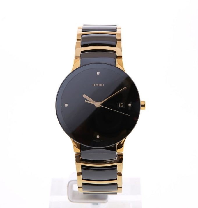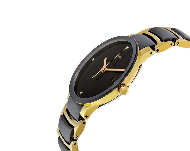 שעון ראדו יד שנייה | ראדו סנטריקס לגברים במצב חדש כולל שנה אחריות | קרמיקה משולב זהב כולל 4 יהלומים | Rado Centrix Men Date Quartz R30929712 Watch