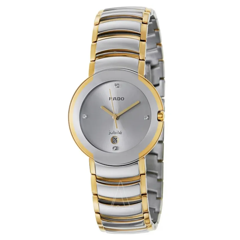 R22533733 שעון ראדו לנשים מסדרת קופל משולב זהב וכסף | שעון יד שנייה כולל שנה אחריות | דגם משובץ 4 יהלומים | RADO Coupole Jubile Watch R22533733
