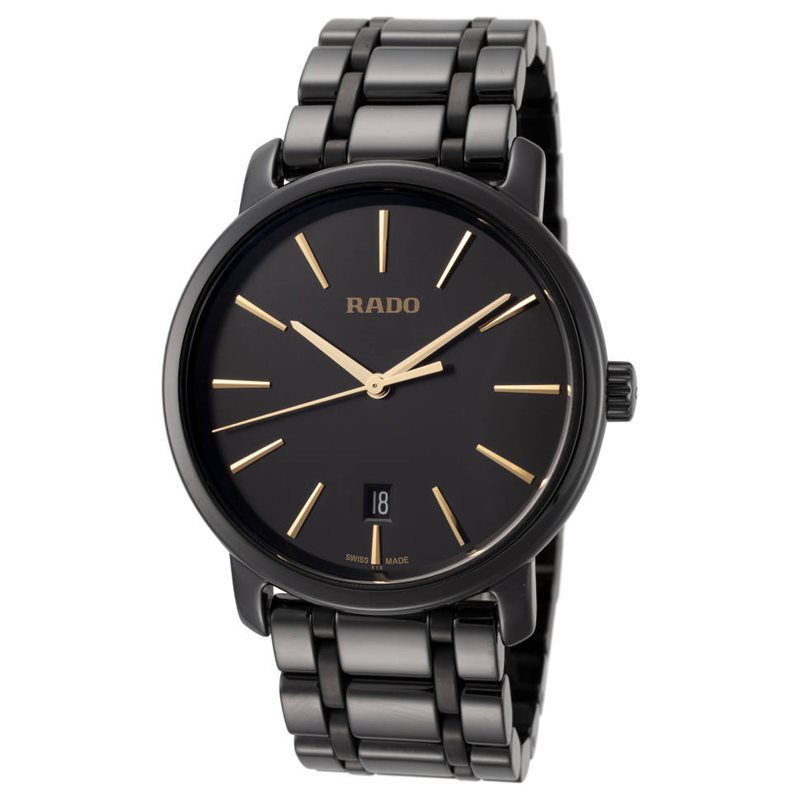 R14066152 שעון ראדו לגברים | דגם קרמיקה במחוגי זהב | שעוני יוקרה לגברים של RADO שווייץ | שנתיים אחריות | Rado Diamaster XL Black Dial Black Ceramic Bracelet Mens Watch R14066152