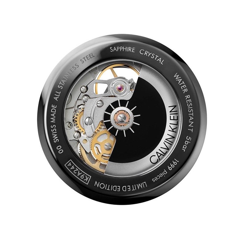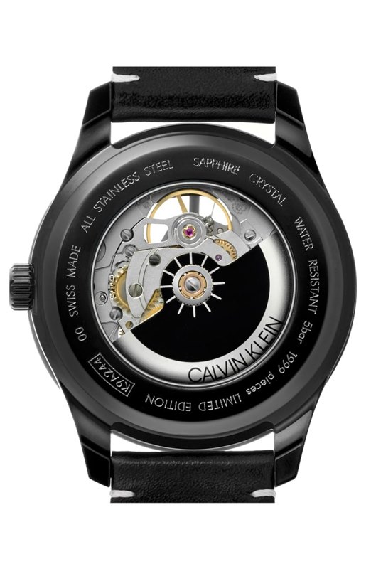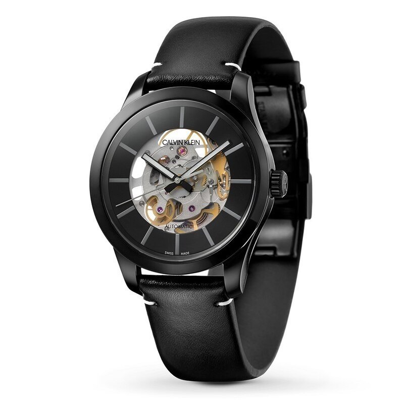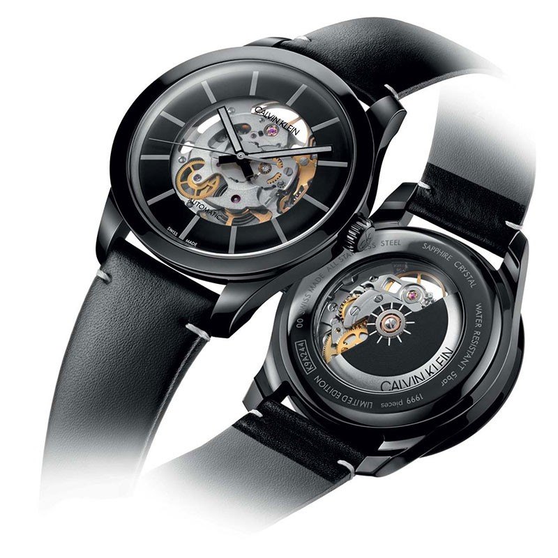 K9A244CY שעון קלווין קליין מהדורה מוגבלת לגברים | דגם אוטומטי סקלטון ברצועת עור | מלאי מוגבל בהחלט | שנתיים אחריות | Calvin Klein Swing Black Skeletal Dial Men's Watch K9A244CY