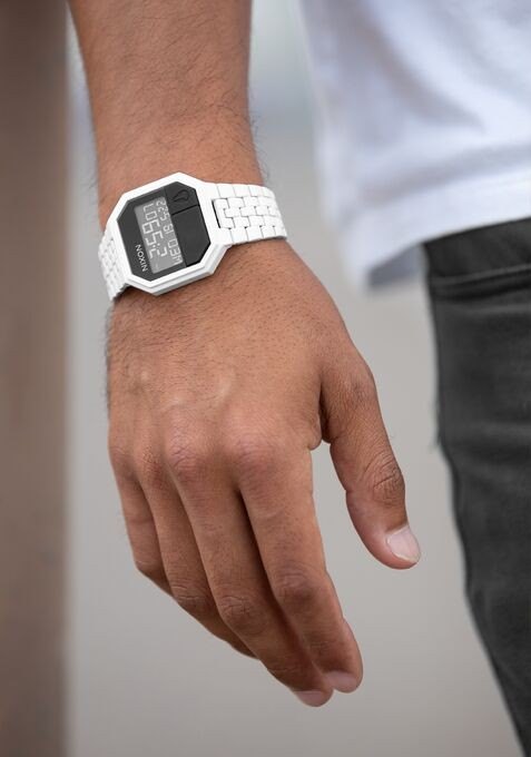 A158126-00 שעוני הספורט של ניקסון במחירי הכרות | שעון דיגיטלי כולל טיימר וסטופר | מלאי מוגבל | חנות שעוני אופנה בראשון לציון | Re-Run Watch | All White | Stainless Steel | Men's & Women