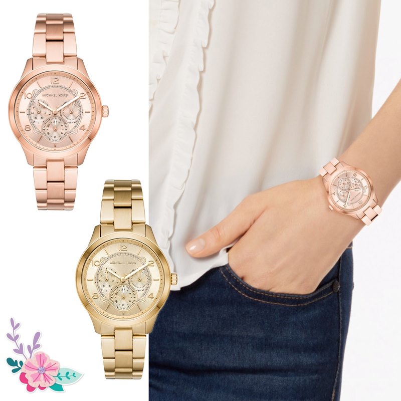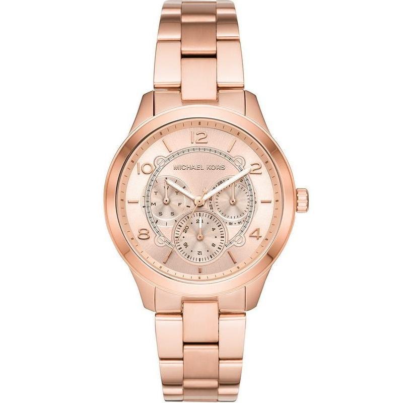 MK6589 שעון מייקל קורס זהב ורוד לאישה | דגם כרונוגרף | שעוני אופנה של מייקל קורס לנשים קולקצייה חדשה | שנתיים אחריות | Michael Kors Women's Runway Chronograph Rose Gold Stainless Steel Watch MK6589