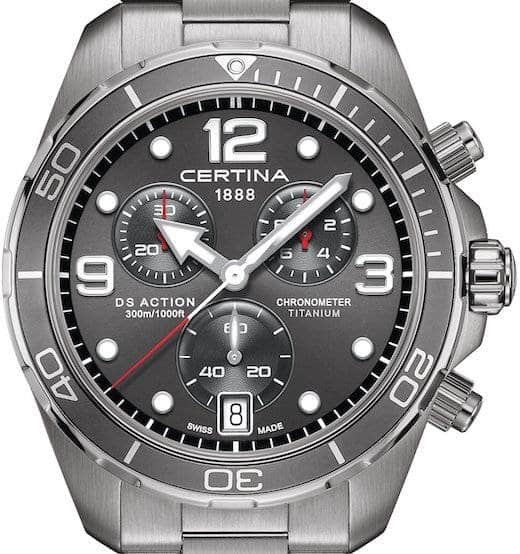 C032.434.44.087.00 שעון סרטינה טיטניום חדש מסדרת אקשן | דגם כרונוגרף כולל 5 שנות אחריות | שעון צלילה מיוחד במבצע | חנות שעונים בראשון לציון | Certina DS Action PrecidriveTitanium Chronometer 43mm
