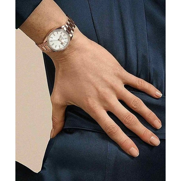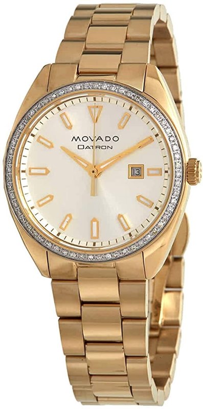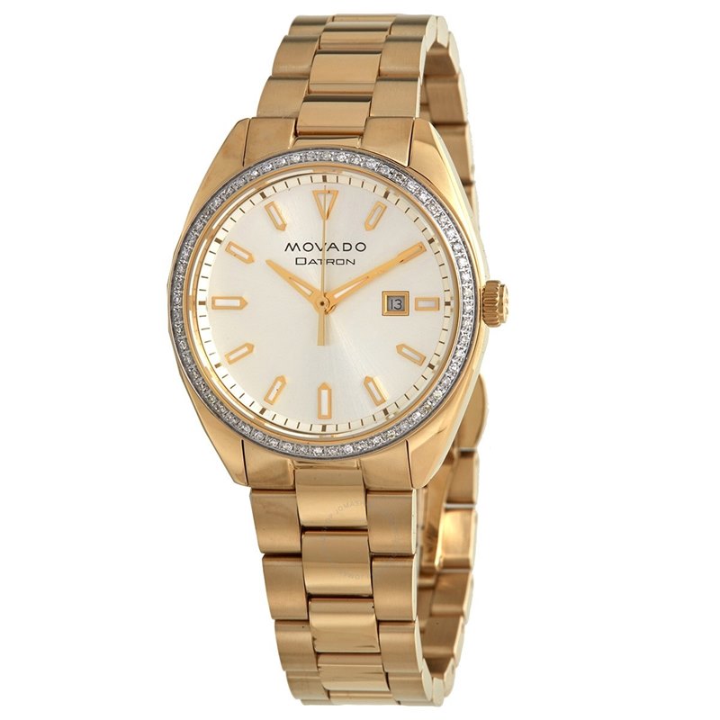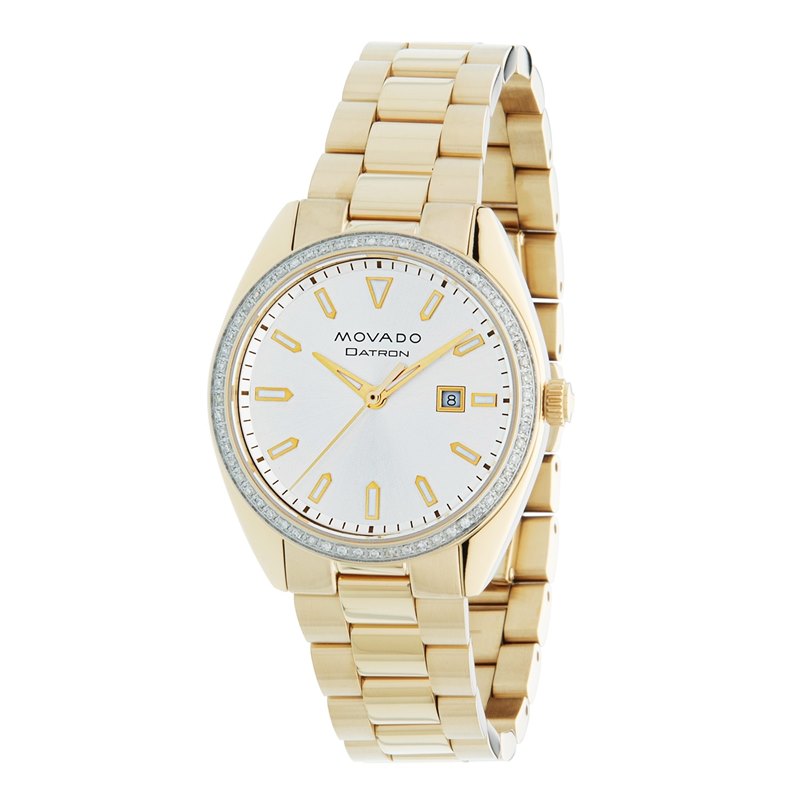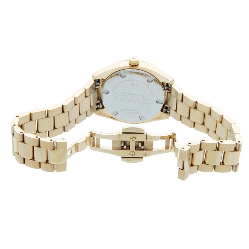 3650070 שעון מובאדו זהב יוקרתי לנשים | דגם משובץ יהלומים בבאזל כולל תאריכון בלוח כסוף | שעוני יוקרה לאישה במבצע | שנתיים אחריות | Movado Heritage 3650070 Gold Swiss Diamond Watch