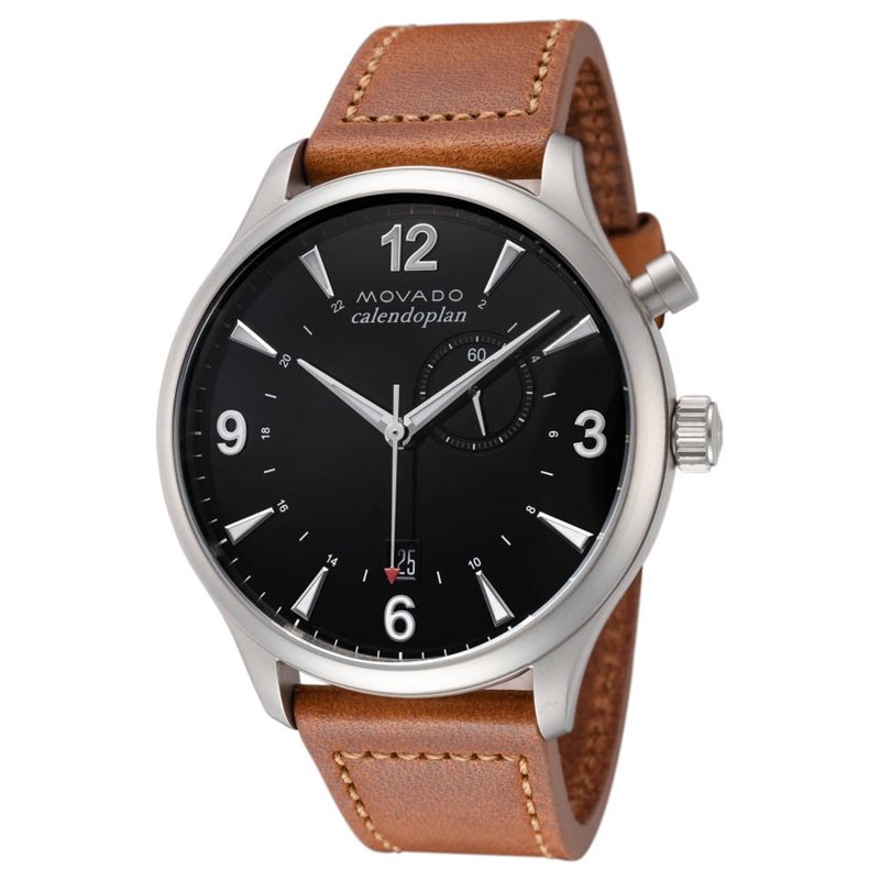 3650016 שעון מובאדו מרשים לגברים | דגם אלגנטי ספורטיבי כולל שעון שניות ותאריכון מלא בלוח | שנתיים אחריות | מלאי מוגבל | Movado 3650016 Heritage Black Dial Brown Leather Strap