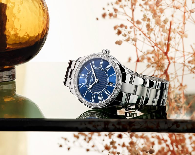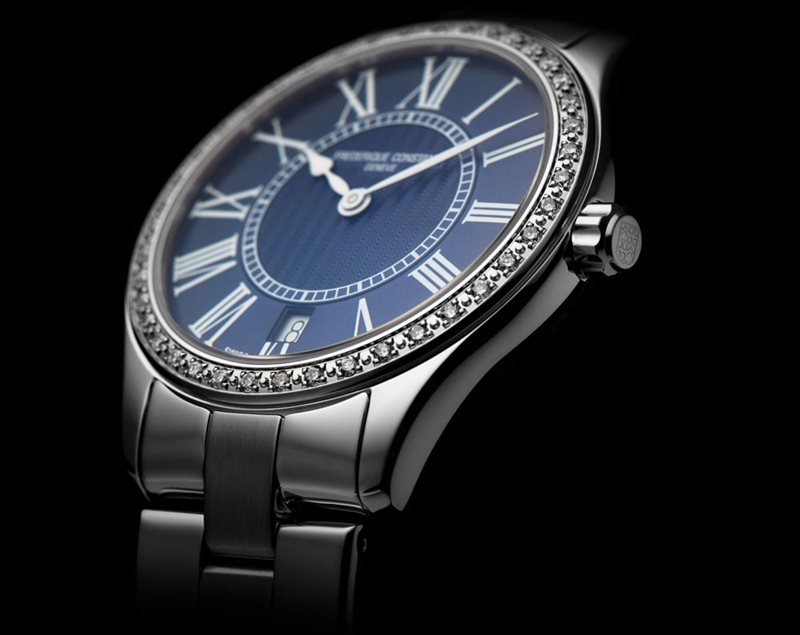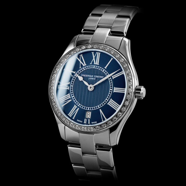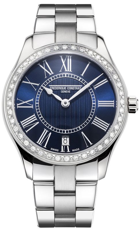 FC-220MN3BD6B שעון יד פרדריק קונטסט יוקרתי מיוחד לנשים | דגם בלוח כחול מושלם ובאזל משובץ ב 40 יהלומים | שעוני יוקרה שווצרים לאישה | שנתיים אחריות | מלאי מוגבל | Frederique Constant Classics DIAMOND