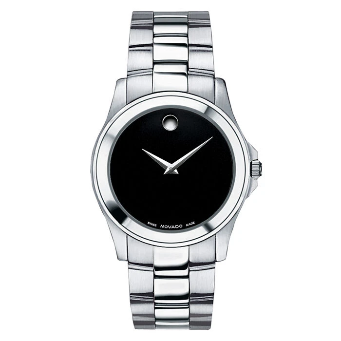 0605746 שעון מובאדו לגברים | דגם קלאסי מושלם ואלגנטי | מובאדו שעונים שווצריים במבצע | לוח שחור חלק כולל שנתיים אחריות | חנות שעוני מובאדו בראשון לציון Men's Movado 0605746 JUNIOR SPORT Stainless Stee