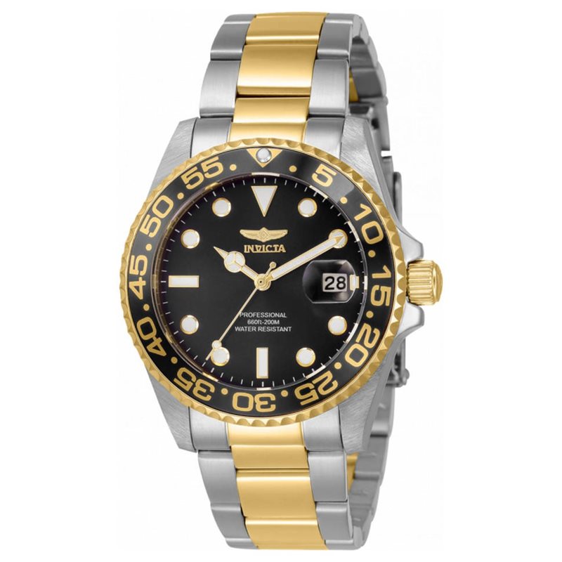 33261 שעון אינוויקטה לגבר ברצועת ספורט משולבת זהב | שנתיים אחריות | לוח שחור ובאזל מסתובב | Invicta 33261 Pro Diver 38mm Black Dial Quartz Two-tone