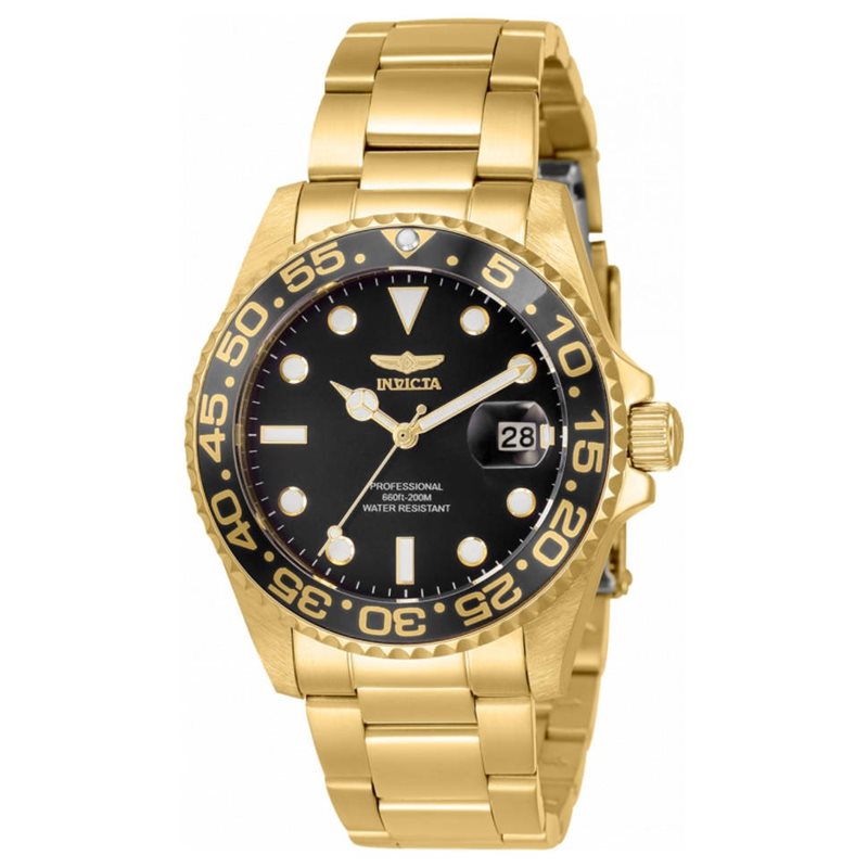33263 שעון יד זהב של אינוויקטה לגברים| דגם סופרטיבי בלוח שחור | מחוגים ואינדקס זוהרים בחשכה | שעוני אופנה לגברים | Invicta 33263 Pro Diver 38mm Black Dial Quartz