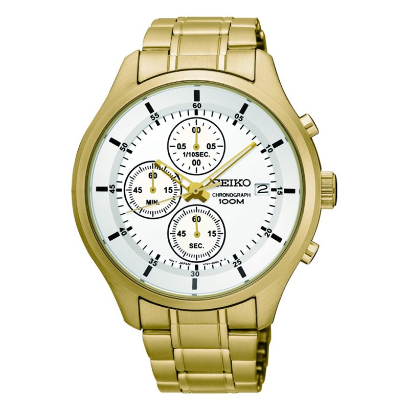 SKS544P1 שעון יד סייקו זהב לגבריםם דגם כרונוגרף | לוח לבן כולל שנתיים אחריות יבואן רישמי בישראל | חנות שעוני אופנה לגברים | Seiko Sks544p1 Gold Stainless Steel Men's Watch