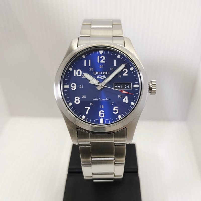 SRPG29 שעון סייקו 5 לגברים דגם אוטומטי בלוח כחול | מחוגים זוהרים בחשכה | תאריכון ימים וחלון אחורי שקוף | שנתיים אחריות יבואן רישמי | SEIKO 5 Sports SRPG29 Automatic Blue Dial Day Date