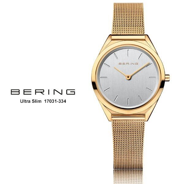 17031-334 שעון ברינג לאישה זהב | דגמי 2021 כולל 3 שנים אחריות יבואן רישמי | רצועת רשת זהב לוח כסוף | Ultra Slim | polished gold | 17031-334 | BERING ® | Official