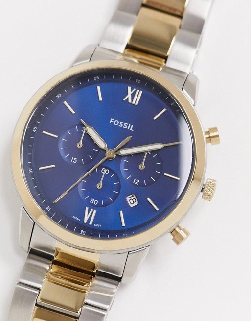 FS5706 שעון פוסיל לגברים מהדגמים החדשים | דגם משולב זהב וכסף כרונוגרף בלוח כחול מיוחד | שנתיים אחריות | eutra Chronograph Two-Tone Stainless Steel Watch - FS5706 at Fossil.