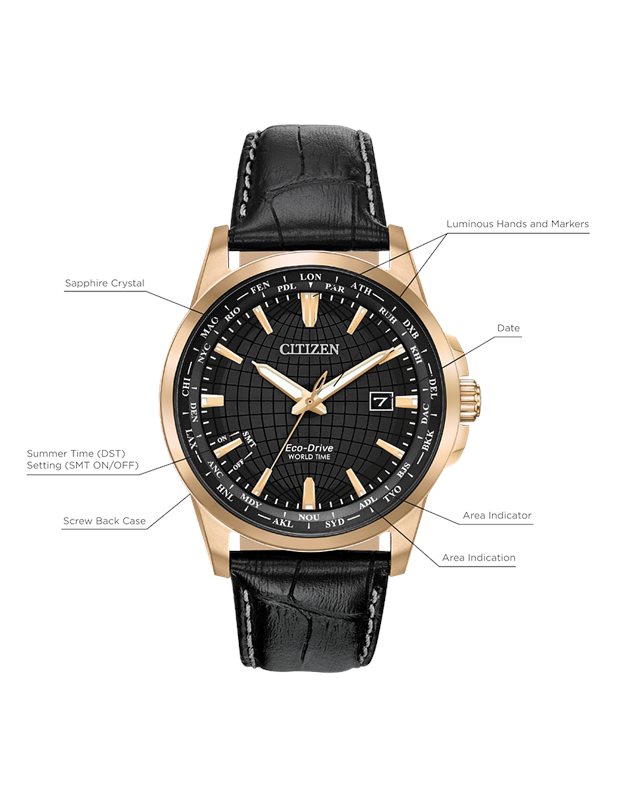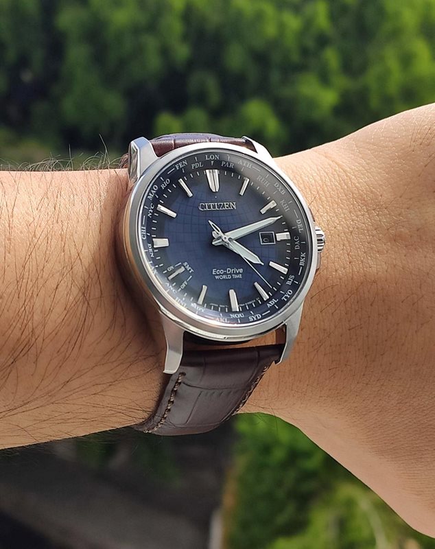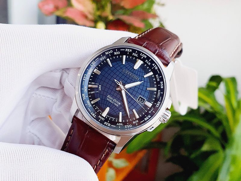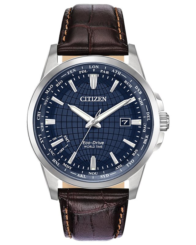 BX1000-06L שעון סיטיזן יוקרתי לברים בלוח כחול מיוחד | מנגנון אקו דרייב דגם שעון עולמי ברצועת עור | שעון אלגנטי ספורטיבי | Citizen Eco-Drive World Time Men's Watch BX1000-06L