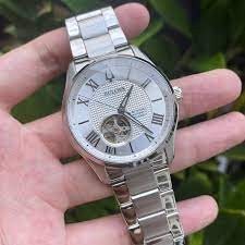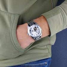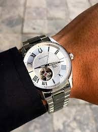 צבע לוח השעון : לבן - מנגנון פתוח סקלטון