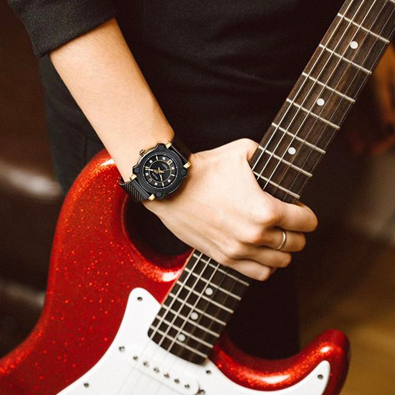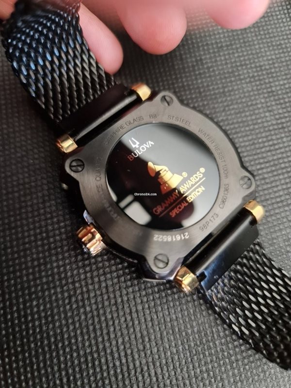 98P173 שעון בולובה לגברים מהדורה מיוחדת ומוגבלת לפרסי הגרמי | שעון ברצועת מאש מנגנון מיוחד ולוח משובץ 6 יהלומים | מלאי מוגבל | שנתיים אחריות | Bulova Women's 98P173 Grammy Awards SE Precisionist