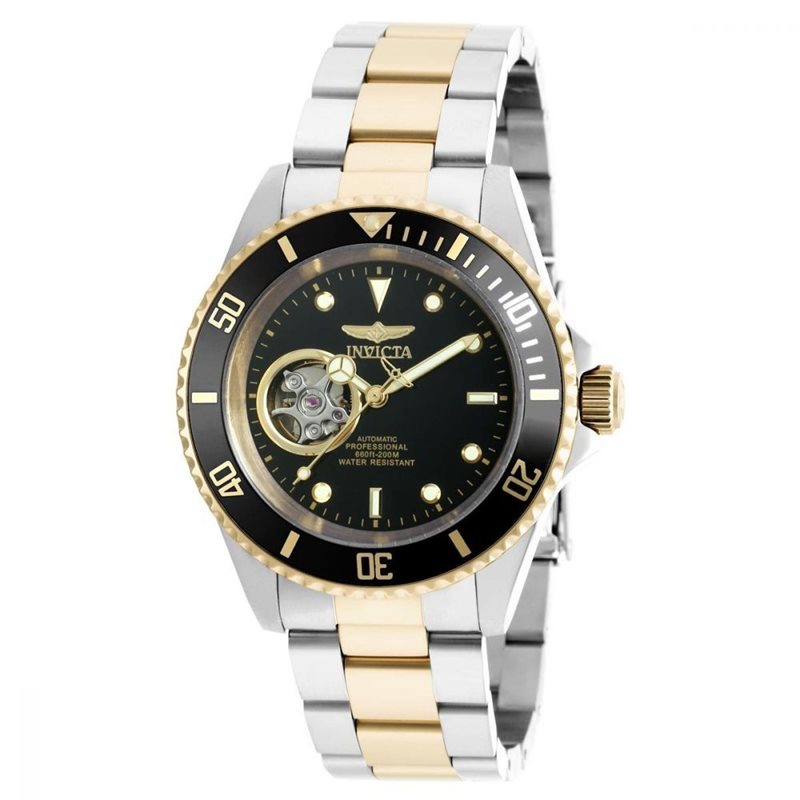 20438 שעון יד אינווקטה לגברים דגם טוטון זהב בלוח שחור סקלטון שקוף וגב שקוף |דגם אוטומטי כולל שנתיים אחריות | מלאי מוגבל | Invicta Pro Diver Automatic Black Dial Two-tone Men's Watch 20438