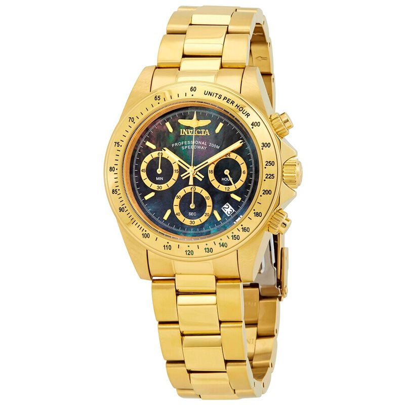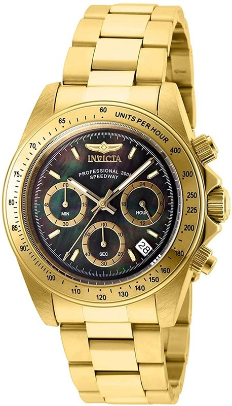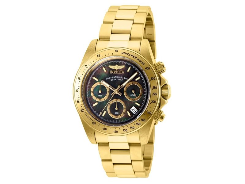 28670 שעון אינווקטה זהב ספורטיבי אלגנטי לגברים | לוח שחור פנינה מיוחד במינו | שעון צלילה כרונוגרף | מלאי מוגבל |Invicta 28670 Speedway Mens Chronograph Quartz Watch