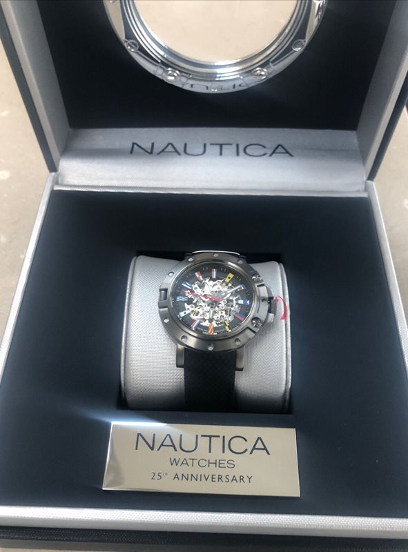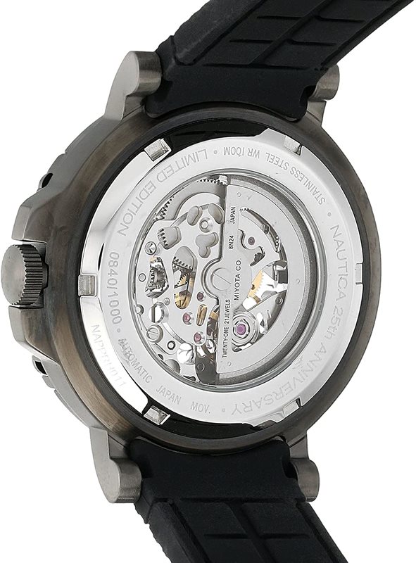 NAPPRH011 שעון יד נאוטיקה לגברים דגם אוטומטי סקלטון במהדורה מוגבלת 1000 יחי בעולם | רצועת סיליקון ספורטיבית | שנתיים אחריות | מלאי מוגבל בהחלט | Nautica Porthole 25th Anniversary Limited Edition NAPP