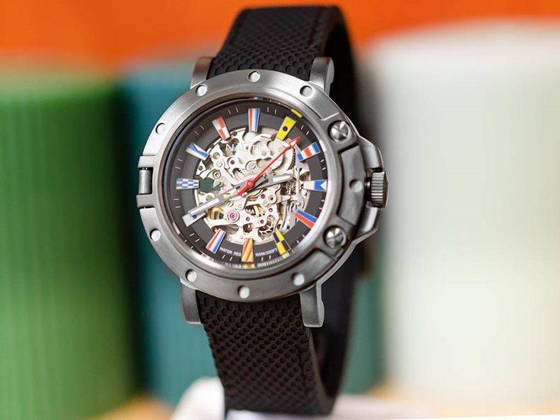 צבע לוח השעון : כסוף שחור שקוף - סקלטון - דגלים